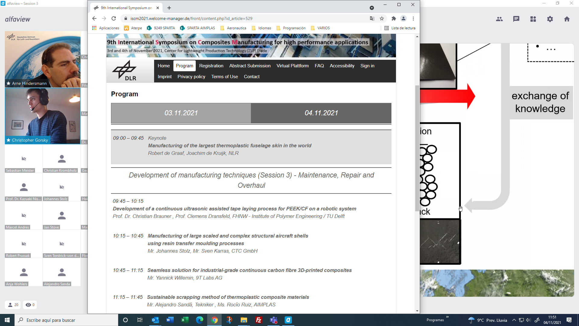 05/11/2021 Alejandro Sandá, from Tekniker, technology centre member of the SPARTA consortium, presented project SPARTA last 4th of november at the 9th International Symposium on Composites Manufacturing for High Performance Applications, ISCM 2021. Upload by: AIMPLAS