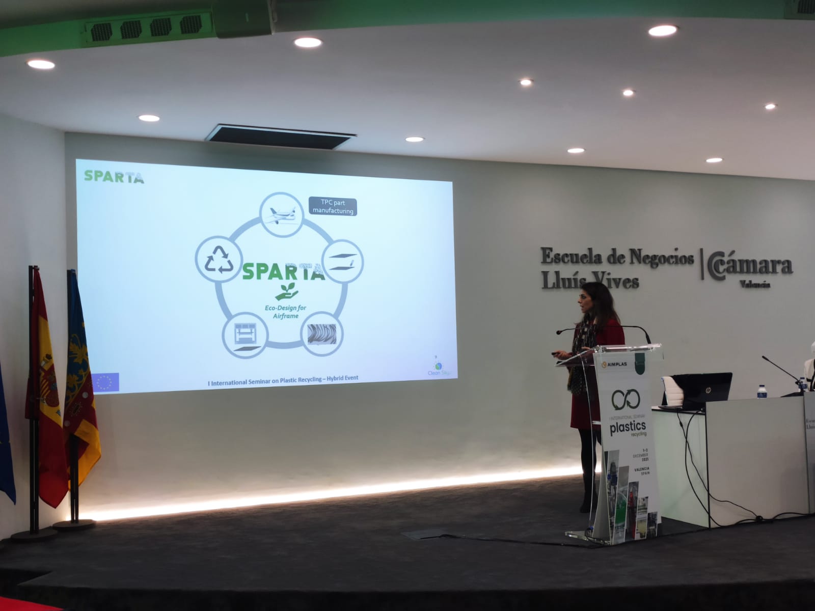 03/12/2021 SPARTA organized a workshop at the I International Seminar on Plastics Recycling. The Seminar was held at the Valencian Business Chamber and School of Business Administration Lluís Vives (Valencia, Spain), and organized by AIMPLAS, project SPARTA`s coordinator. As part of the workshop, Rocío Ruíz Gallardo, researcher of AIMPLAS`s Sustainable and Future Mobility Group, presented the project. Upload by: AIMPLAS